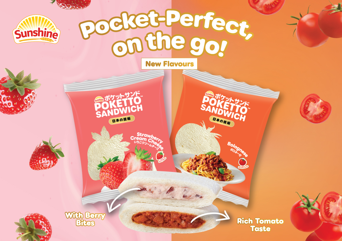 We’re excited to unveil two delicious new additions to the Sunshine Bakeries Poketto™ Sandwich range — Bolognese and Strawberry Cream Cheese. Crafted with Japanese-inspired convenience and sealed in our signature pocket-sized format, Poketto™ sandwiches make on-the-go snacking easy, tasty, and satisfying.