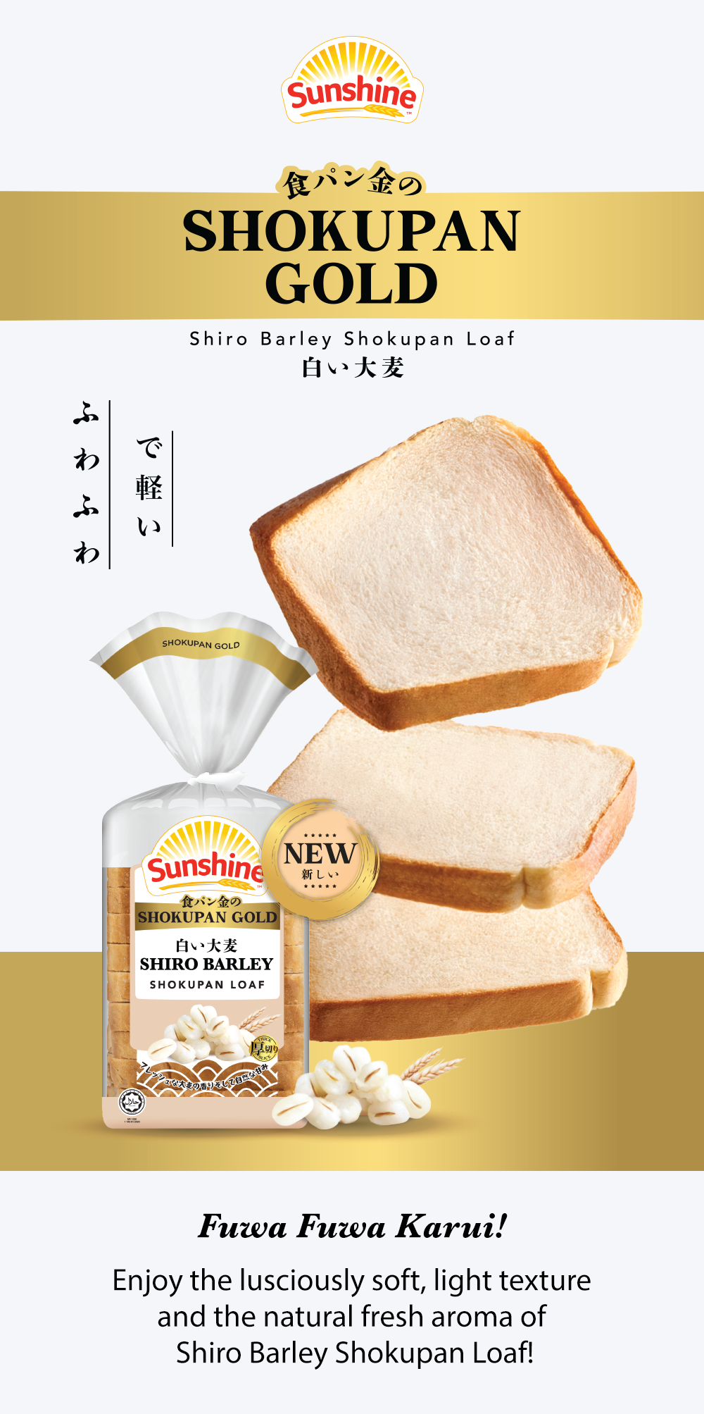 Introducing the new Shiro Barley Shokupan Loaf crafted with artistry of Japanese inspired bread to perfection! Every slice is soft, light with refreshing barley aroma for everyday enjoyment.